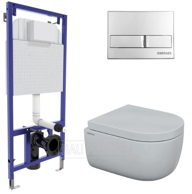 Унитаз подвесной Berges Wasserhaus Ego Rimless с сиденьем Toma SO + инсталляция Novum 525 с кнопкой L3 (043231)